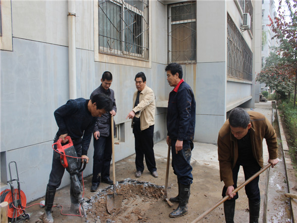 11日上午,熱力公司對(duì)河南街小區(qū)進(jìn)行加壓試氣,工作開(kāi)展半小時(shí)后,換熱站工作人員就發(fā)現(xiàn)設(shè)備處于低壓運(yùn)行狀態(tài)。經(jīng)與維修人員查看,問(wèn)題出現(xiàn)在4號(hào)樓三單元地下管網(wǎng),維修部立刻對(duì)出現(xiàn)問(wèn)題段地面進(jìn)行開(kāi)挖,物業(yè)公司總經(jīng)理趙明海,副總經(jīng)理魏述剛第一時(shí)間趕赴現(xiàn)場(chǎng),指導(dǎo)維修人員并參與搶修工作。