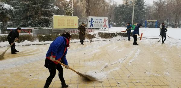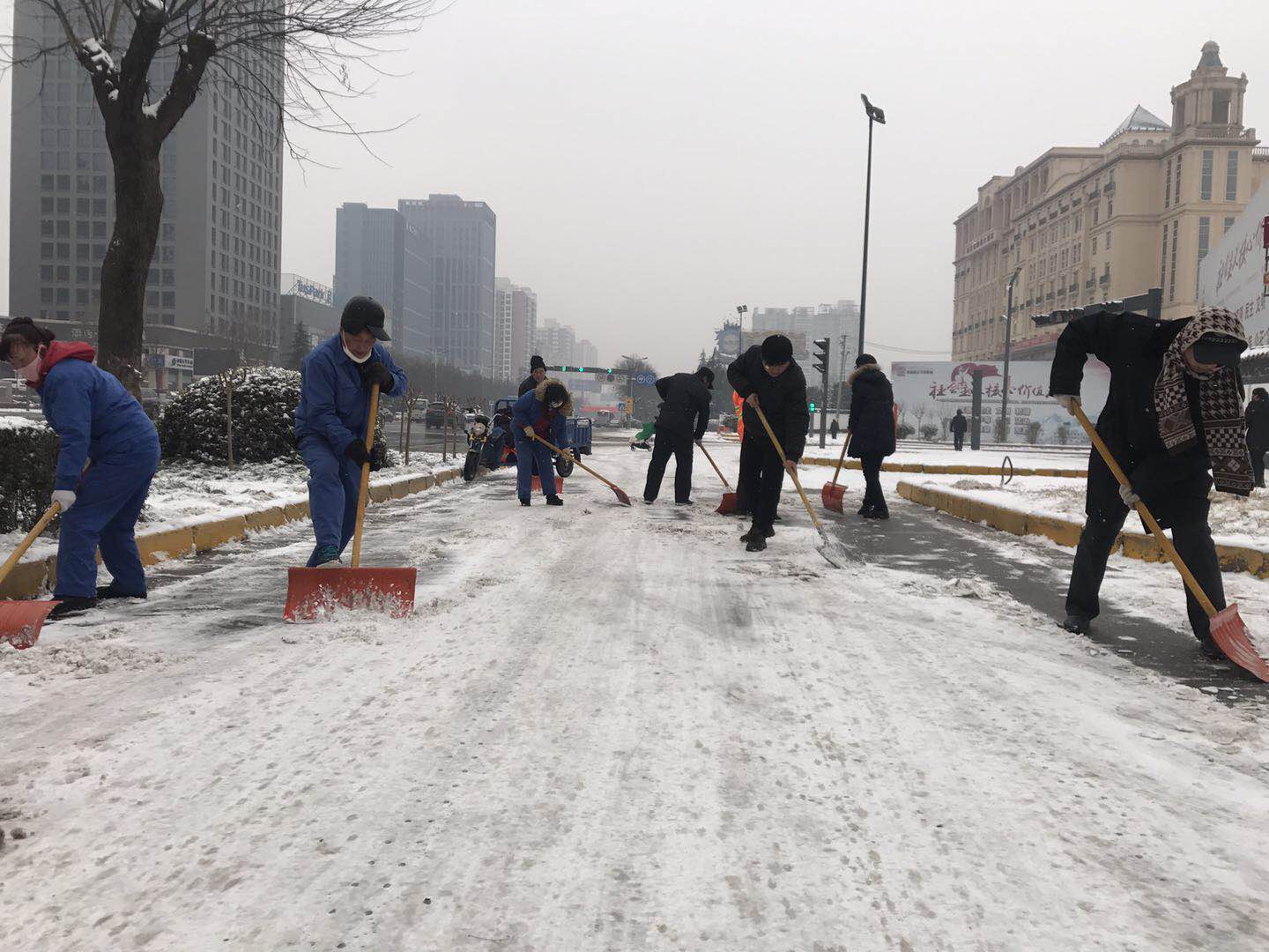 由于氣溫較低,主干道路的雪被壓得很瓷實(shí),清掃工作十分困難。天氣雖然寒冷,但是大家熱情高漲,即使手凍的通紅,也擋不住大家的干勁。都爭先恐后,團(tuán)結(jié)協(xié)作、井然有序,掃的掃、鏟的鏟,干勁十足,一心想著將路面的積雪盡快清除,經(jīng)過一天的奮戰(zhàn),基本將包抓路段、主干道積雪清掃干凈,確保了廣大居民、業(yè)主的出行安全。